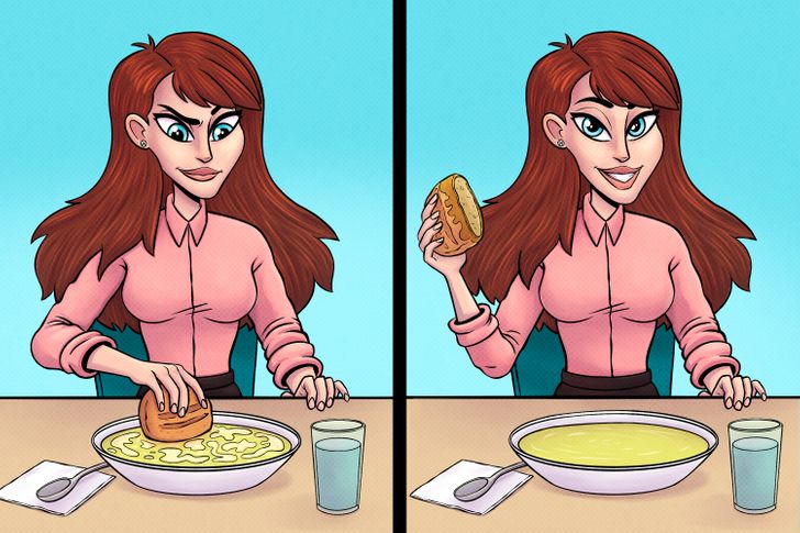 Bread can absorb liquid easily. That’s what makes it perfect for eating. It also becomes handy for the things you don’t want to eat! To skim the fat off of soup, a sauce, or a hot pot dish, dip some bread directly onto fat. It’ll be easily absorbed and can be taken out and thrown away.
