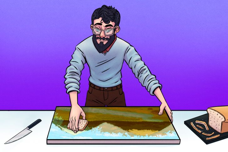 The soft part of the bread has a great texture that allows you to get into tiny dents and hollows. That’s a great feature when it comes to cleaning detailed surfaces like old paintings. Just dab a piece of crustless fresh bread lightly on the painting and you’ll see the dust and dirt get stuck on it. If you notice crumbs, use a soft brush to wipe them off.