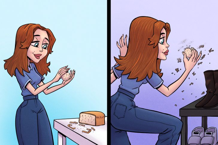 The spongy texture of the bread is also amazing for cleaning stains. Make a firm ball out of crustless bread and use it for kitchen or bathroom stains. It will work like an eraser and you won’t need to worry about the chemicals in cleaning products!