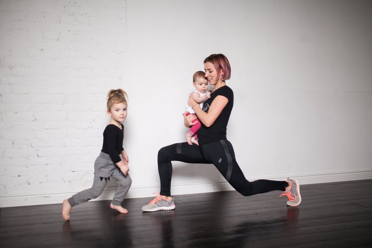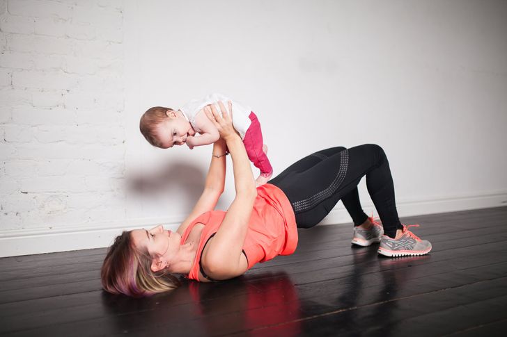 When a baby is born, we don't have much time to go to the gym. But all new moms want their figures back as soon as possible. A survey has shown that nearly 60% of moms with one- to 2-year-olds still carry a few extra pounds. If you don't want to be a part of these statistics, you can start working on your body in your own home and make your baby your new workout buddy!